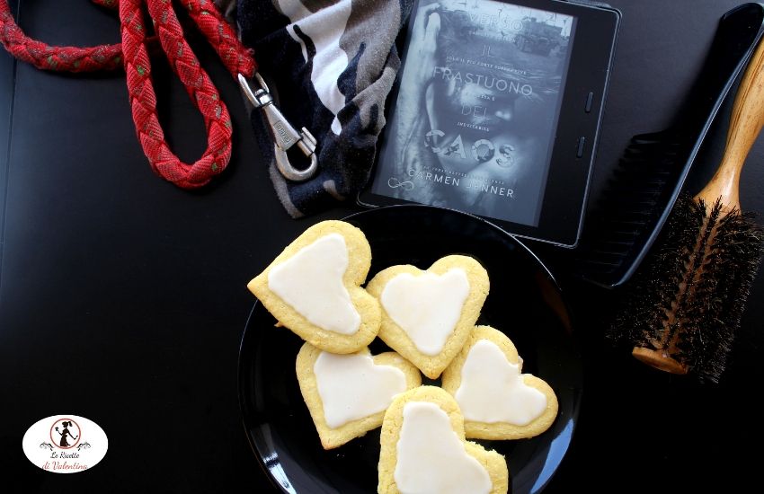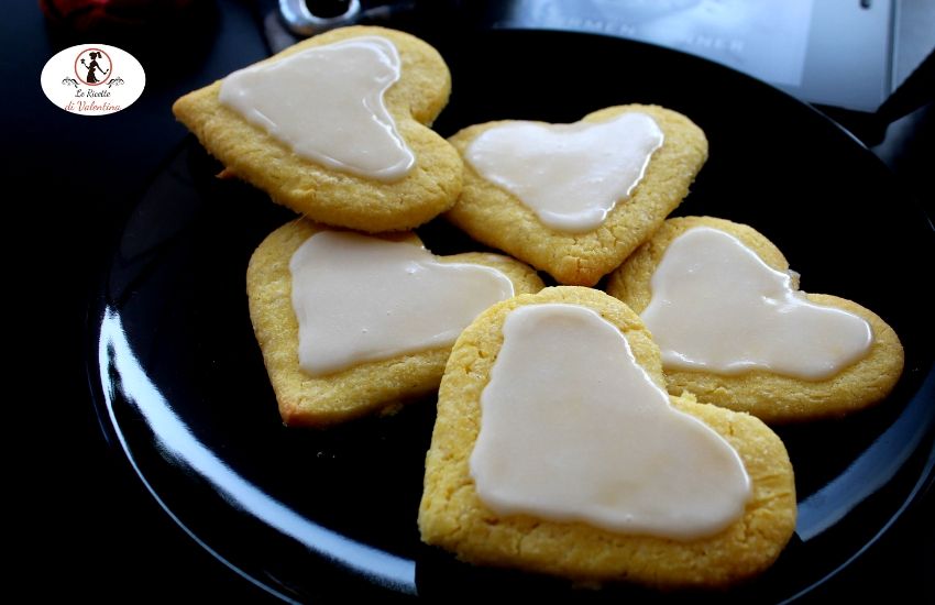 Disegnate il contorno a forma di cuore con la glassa su ogni biscotto, aspettate che si rapprenda per qualche minuto e poi procedete a riempire la superficie disegnata.