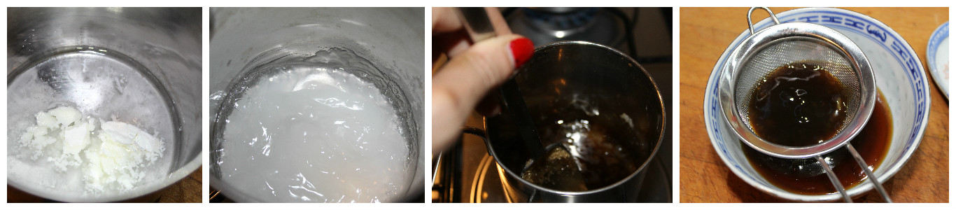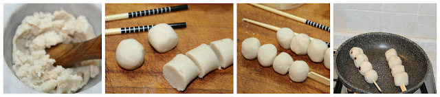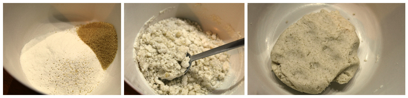 In una ciotola mettete la farina di riso con lo zucchero, unite l’acqua e impastate fino ad ottenere una palla liscia.