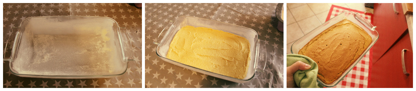 Imburrate generosamente una teglia ed infarinatela, versate l’impasto all’interno e livellatelo con una spatola. Infornate e cuocete per circa 30 minuti a forno statico. Dorato in superficie ma soffice all’interno.