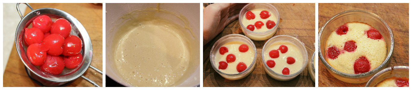 Aggiungete 5 ciliegie per ognuno e infornate per 12 minuti.