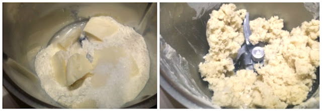 Per preparare l’impasto della crosta di conviene usare un robot da cucina nel mio caso il Bimby ma andrà bene un modello altrettanto potente. Inserite tutti gli ingredienti insieme a 7 cucchiai d’acqua, iniziate a lavorare il tutto ha una velocità sostenuta. Dovete lavorare gli ingredienti finché da sabbia umida non si raggrupperanno in una palla. A seconda della farina che utilizzate potrebbe essere necessario unire gli ultimi tre cucchiai d’acqua.