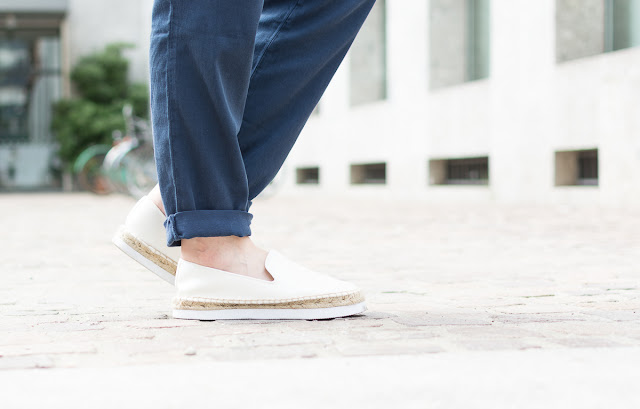 Infine le scarpe, una via di mezzo tra espadrillas e slip on, con una sottile para bianca appena sotto alla parte in corda. Sono bianco sporco con dettagli iridescenti ma che francamente non si notano, tanto meglio!