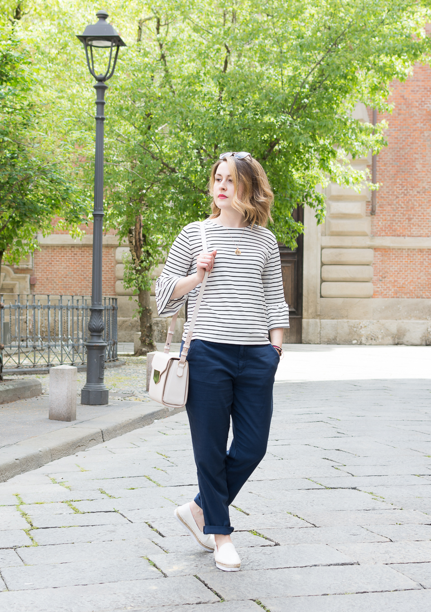 La maglietta marinière è di Pull&Bear, l’ho acquistata online e non me ne sono pentita! Il tessuto è di quelli che non si stropicciano e le maniche a sbuffo mi fanno impazzire!