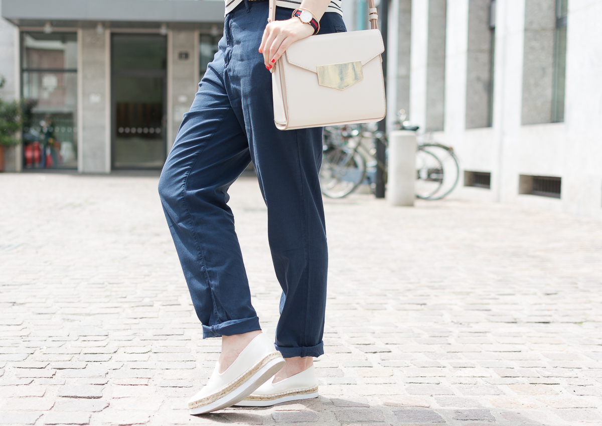 Io ovviamente non ho perso l’occasione per indossare i miei nuovi acquisti e dimostrare che il look marinaretto, con pezzi semplici e colori basici, è un passe-partout che ben si adatta ad essere portato anche in città.