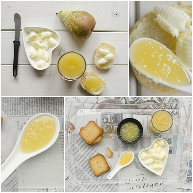Non è stato così… panico! «Che fare adesso? Potrei farci una marmellata, ma non la vorrei banale; le pere sono buone ma delicate, cosa potrei aggiungere pensavo… potrei aggiungere lo zenzero… oppure la cannella, il cacao ma non è bella da vedere, ci vuole un accostamento che non sovrasti la delizia delle pere… e il cioccolato bianco si potrà o diventerà una schifezza?»