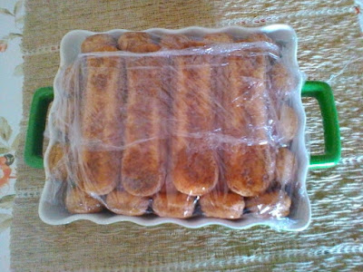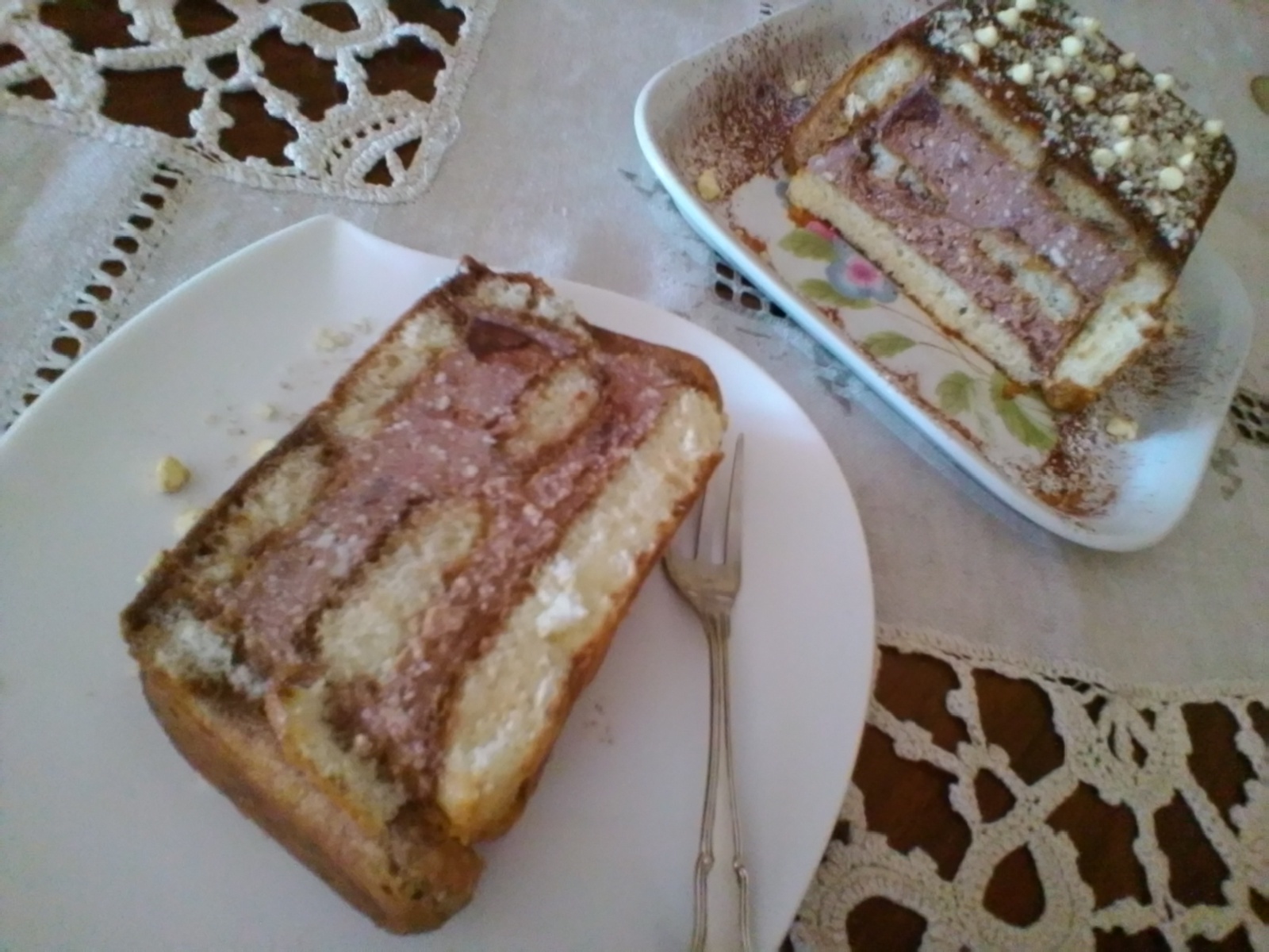 Prendete una pirofila e rivestitela con pellicola trasparente. Bagnate quindi i savoiardi e disponeteli uno accanto all’altro, ricoprite con metà della crema di ricotta. Continuate con un altro strato di savoiardi bagnati e la restante crema. Coprite la mattonella con la pellicola e mettetela in frigo.