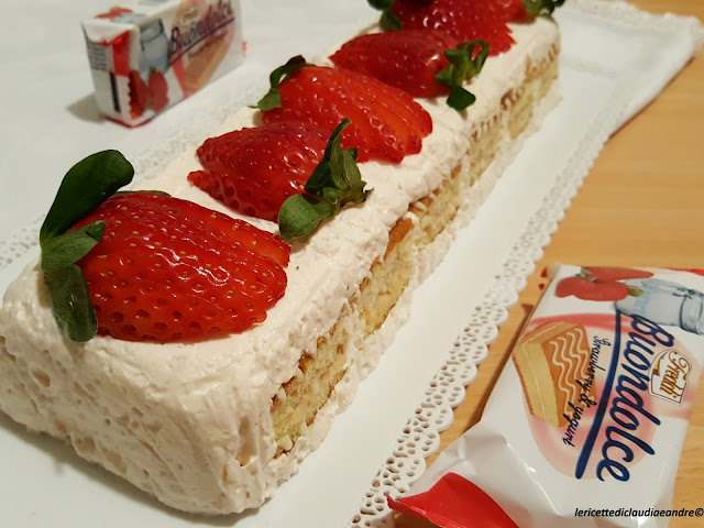 - Il giorno dopo sformare la cheesecake su un vassoio rettangolare 36 x 16 cm , io Poloplast, e decorare a piacere con delle mezze fragole. Servire !