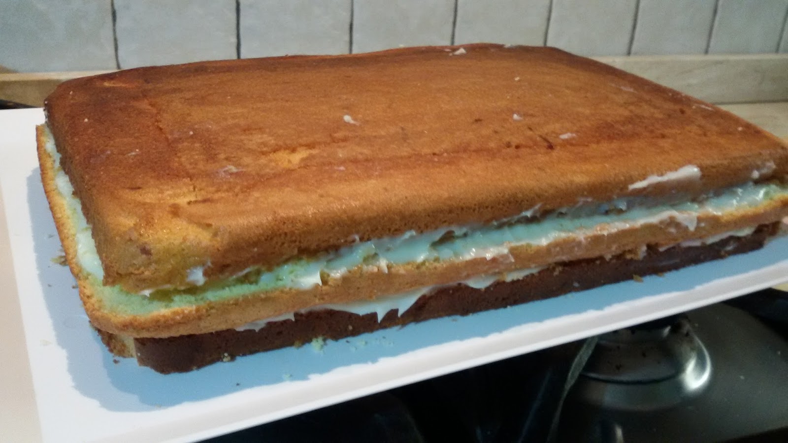 Io ho fatto il Pan di Spagna il mercoledì, la crema e farcitura giovedì, copertura e decorazioni venerdì. pomeriggio per la festa che era dopo cena.