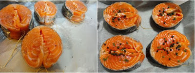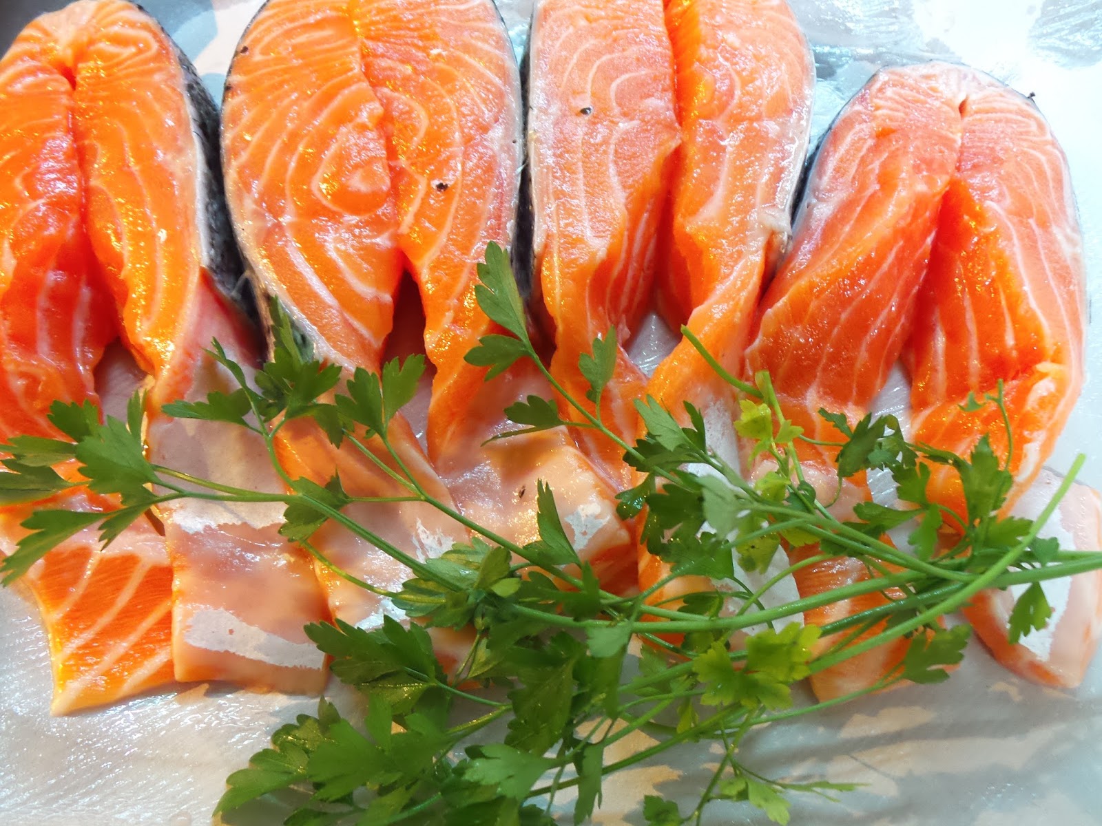1 Kg di salmone in 4 tranci alti circa 2 cm