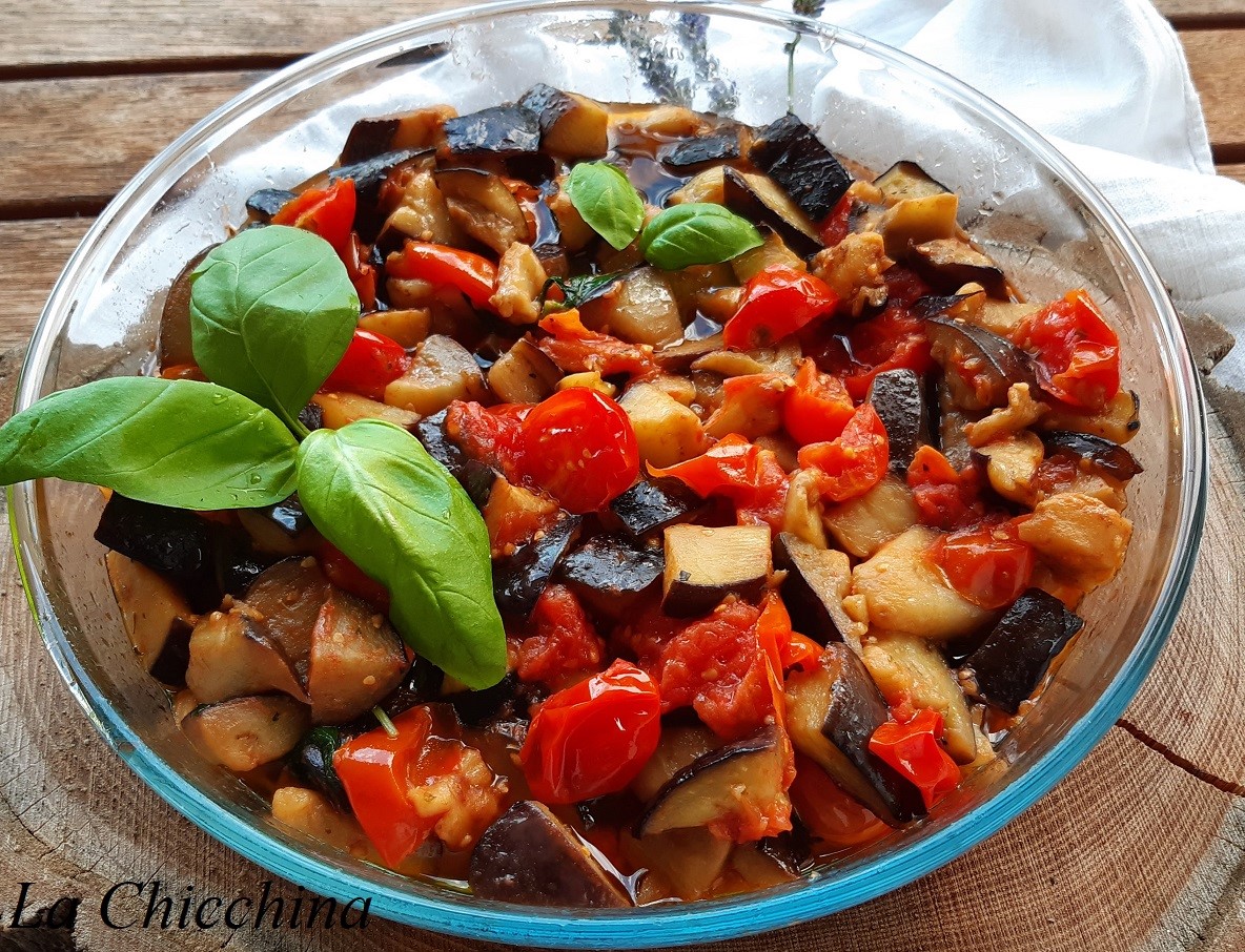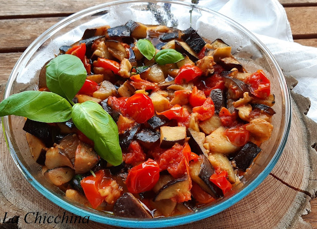Le nostre melanzane a funghetto sono pronte: profumate e golose, un abbraccio, la Chicchina.