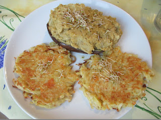 Tagliare in due la melanzana e cuocerla al forno per 30 minuti a 190°. Scavarla con il coltello e tritarne il contenuto con i ceci cotti precedentemente e l’aglio. Aggiungere sale e peperoncino e farcire le melanzane, adagiate su una teglia con cartaforno. Versare un filo d’olio ed infornare a 190° per altri 20 minuti. Decorare a piacere con erbette o germogli.