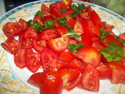 Nel frattempo tagliate a dadini i pomodorini ed insaporiteli con sale, olio, origano e basilico fresco e teneteli da parte.