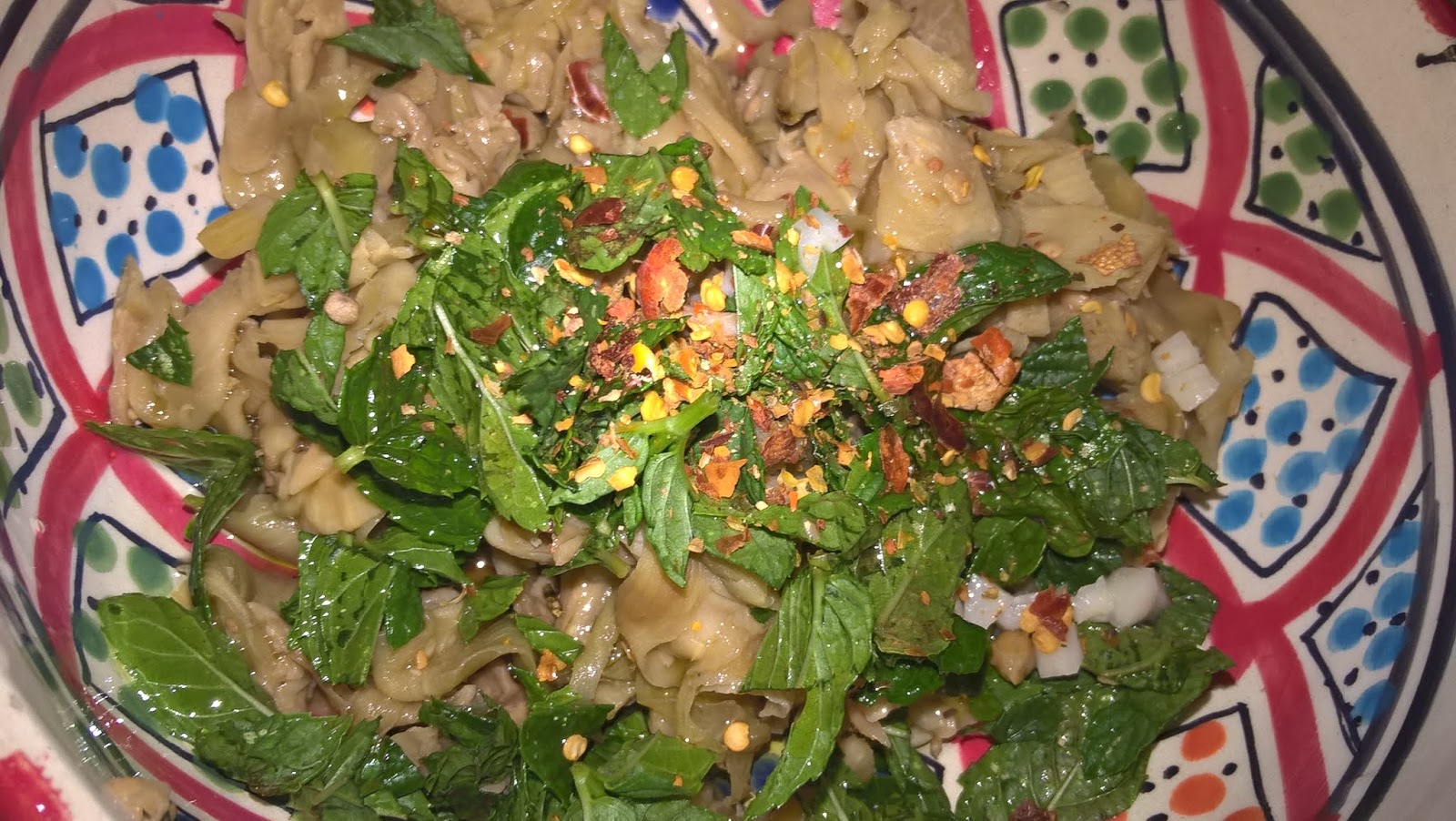 Strizzatele di nuovo, tagliuzzatele ancora più finemente e mettetele in una ciotola e condite con olio extravergine d’oliva, peperoncino piccante secco o fresco, origano, mentuccia fresca e se vi piace un po’ d’aglio. Fate insaporire, magari tenendo il tutto in frigo, per un paio d’ore.