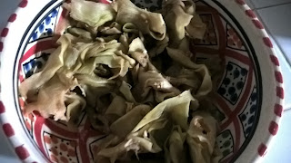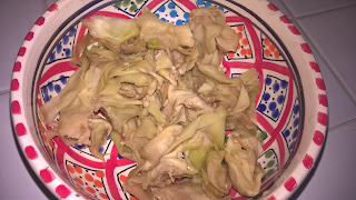 Sbucciatele e tagliatele a fettine sottilissime; salate e lasciatele in uno scolapasta a perdere tutta l’acqua di vegetazione. Quindi strizzatele per bene e mettetele in una ciotola con una parte d’acqua, una di succo di limone e una di aceto bianco. Vedrete che diventeranno molto chiare. Lasciatele in questa soluzione per mezza giornata.