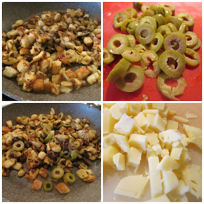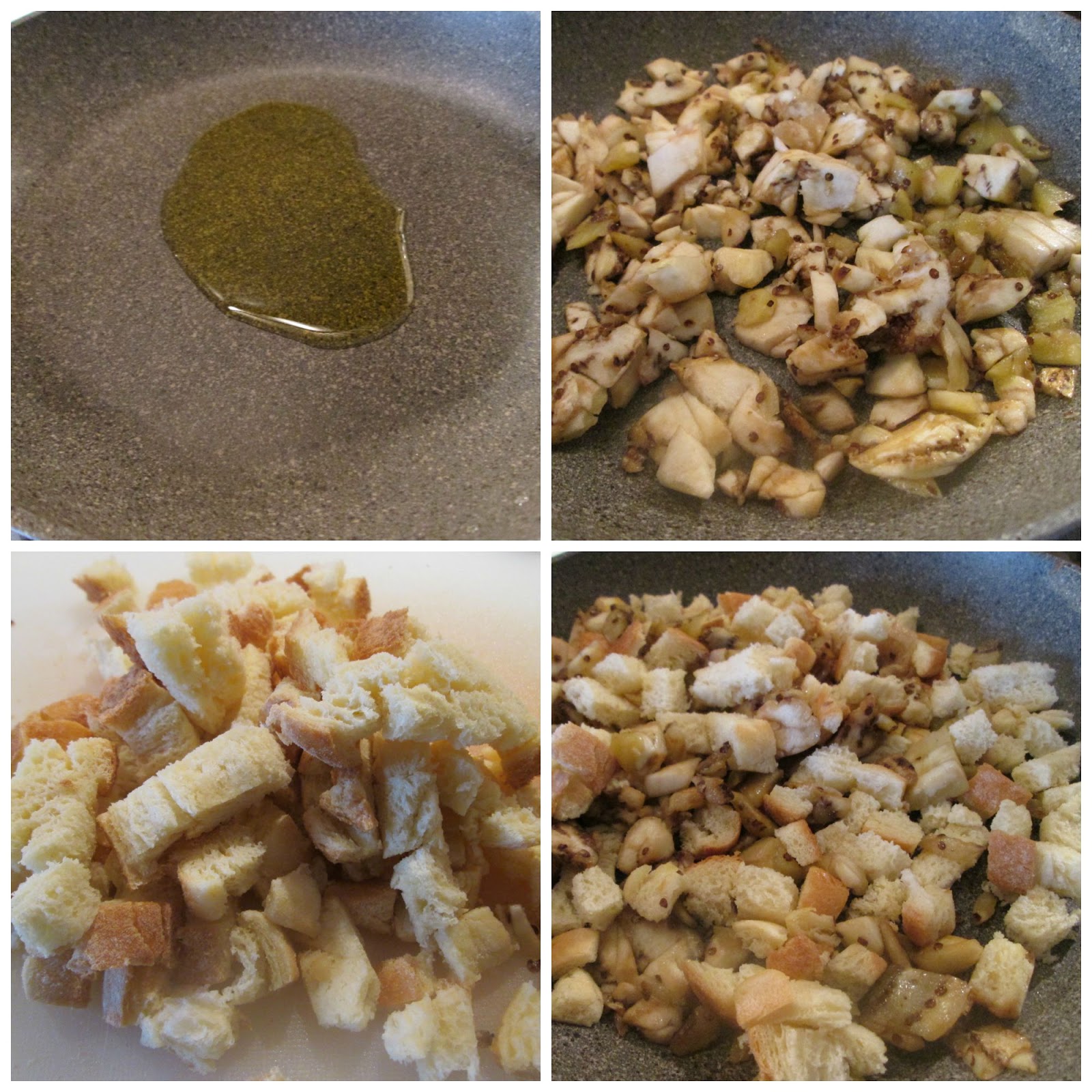 - tagliate a cubetti anche le fette di pane e aggiungetele nel tegame dopo qualche minuto