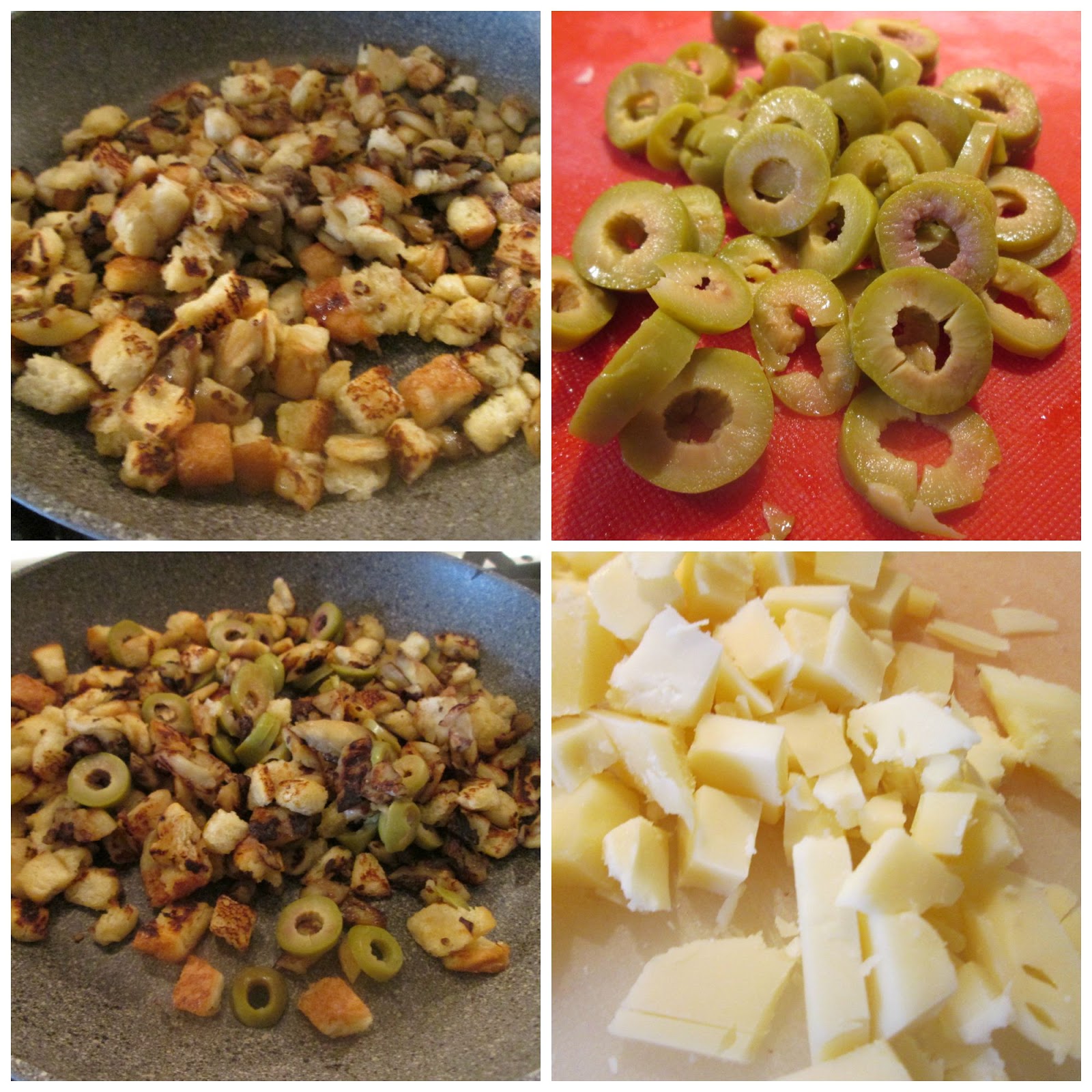 - tagliate a cubetti anche le fette di pane e aggiungetele nel tegame dopo qualche minuto