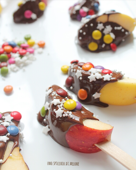 Tornando alle nostre MELE POPS, ci tenevo a sottolineare il fatto che rappresenterebbero uno SNACK IDEALE da presentare alle FESTE di COMPLEANNO dei vostri bambini.