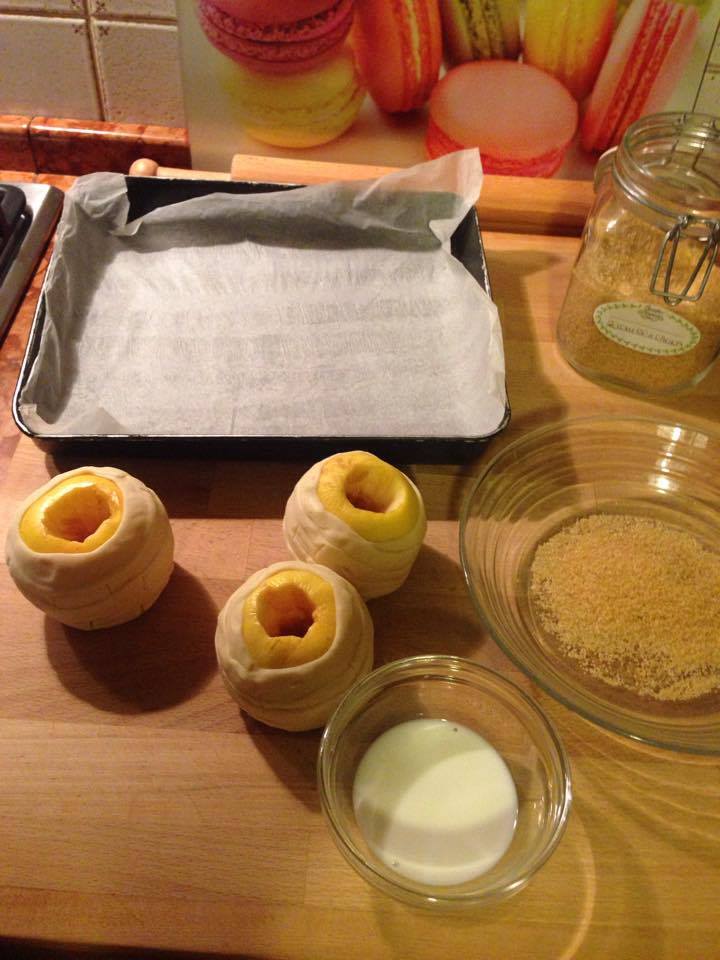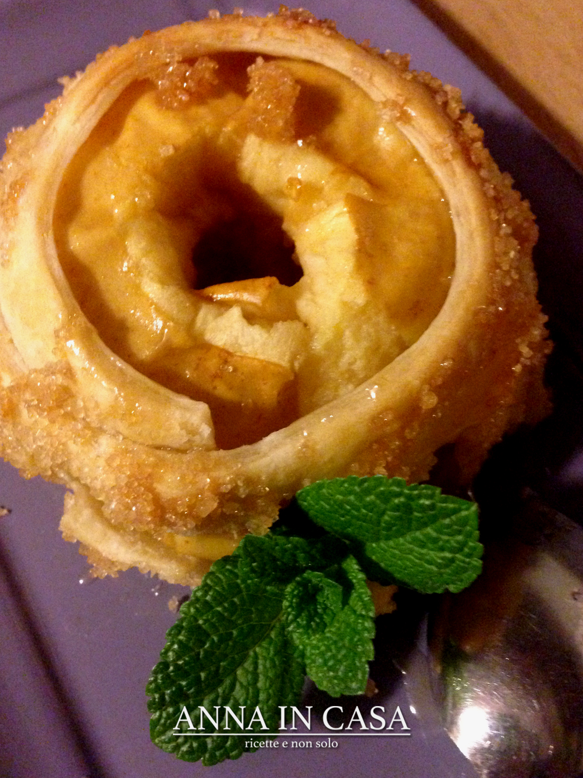 Avvolgere le mele con le strisce di sfoglia lasciando liberi gli estremi.