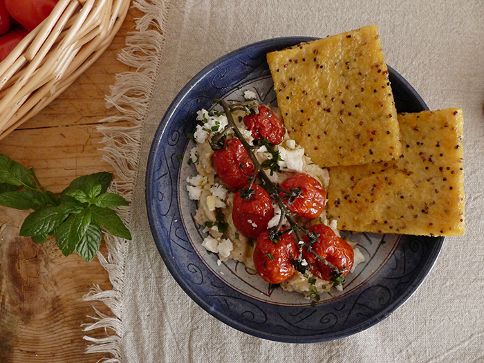 Usate la crema per guarnire crostini, è ottima anche con fette di polenta arrostita o nell’aperitivo, perchè no, con le streghe bolognesi, posate sulla vostra crema di melanzana i pomodorini arrosto, cospargete con briciole di feta, menta fresca tritata e un filo di olio d’oliva