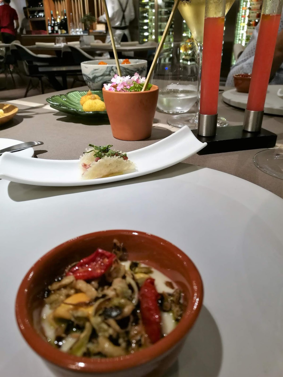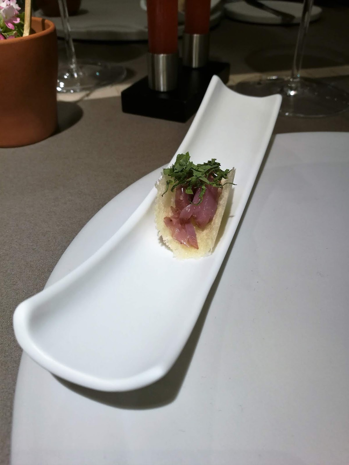 La cena inizia con una entree, in linea con l’idea del locale, rivisitare ma non stravolgere la cucina locale, i piatti e i sapori risultano riconoscibili e si apprezzano la tecnica nella cottura e il bilanciamento dei sapori.
