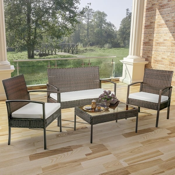 4 Piece Rattan Outdoor Patio Furniture Set Only 170 99