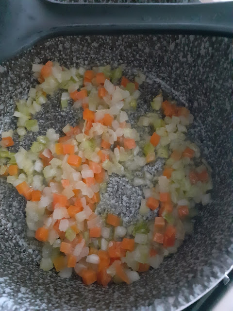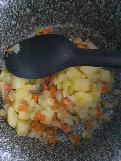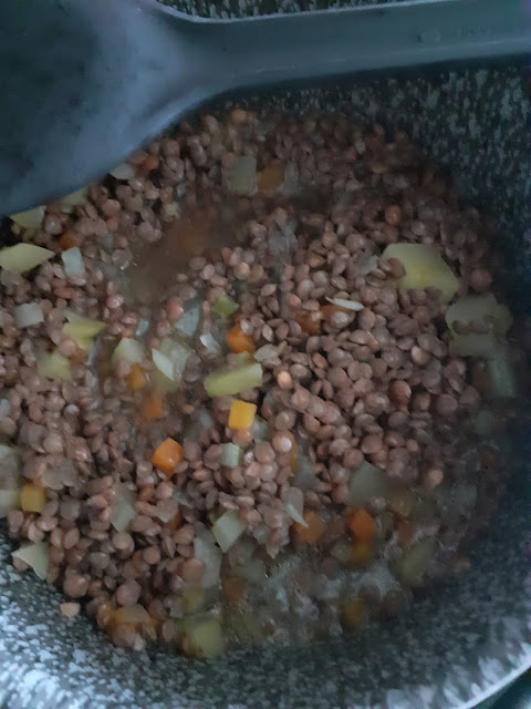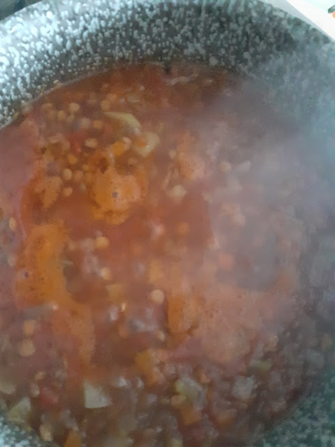 200g.lenticchie rosse-1 carota a tocchetti-1 cipolla piccola-1 patata media-2 cucchiai di passata di pomodoro-acqua a coprire-peperoncino q.b-sale q.b PROCEDIMENTO