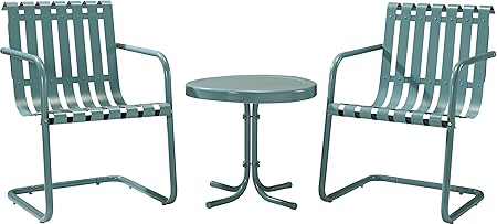 Crosley Furniture Gracie 3 Piece Retro Metal Outdoor Conversation Set With Side Table And 2 Chairs Caribbean Blue