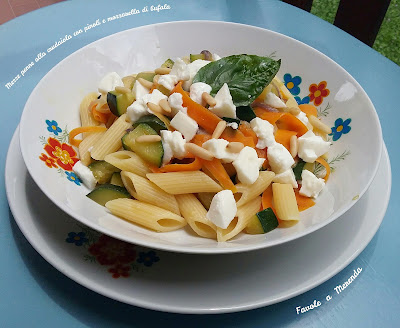 Mezze penne alla crudaiola con pinoli e mozzarella di bufala