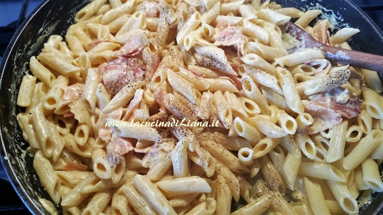 frattempo lessare la pasta in abbondante acqua bollente salata, poi scolarla e saltarla in padella con la salsa allo speck e zafferano. Spolverizzare con del parmigiano.