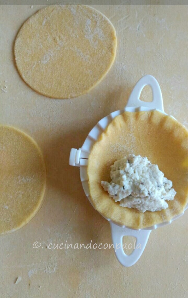 Ora passiamo alla pasta: stendete la sfoglia sottile e con uno stampo per ravioli