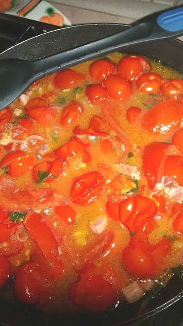 In una capace padella olio e cipolla ad imbiondire,aggiungere lo spek,una volta rosolato unire