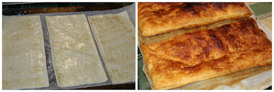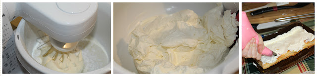 Preparate la crema montando la panna con il mascarpone e lo zucchero a velo, otterrete un composto gonfio ma compatto. Riempite una tasca da pasticcere con bocchetta a stella grossa e lasciate riposare in frigorifero 30 minuti. Se non siete pratici di tasche da pasticcere, potete usare una semplice spatola per spalmare la crema. Sistemate il primo rettangolo di pasta sfoglia sul piatto da portata e ricopritelo di crema utilizzando la tasca da pasticcere, scegliete se fare dei cordoncini di crema o dei ciuffetti.