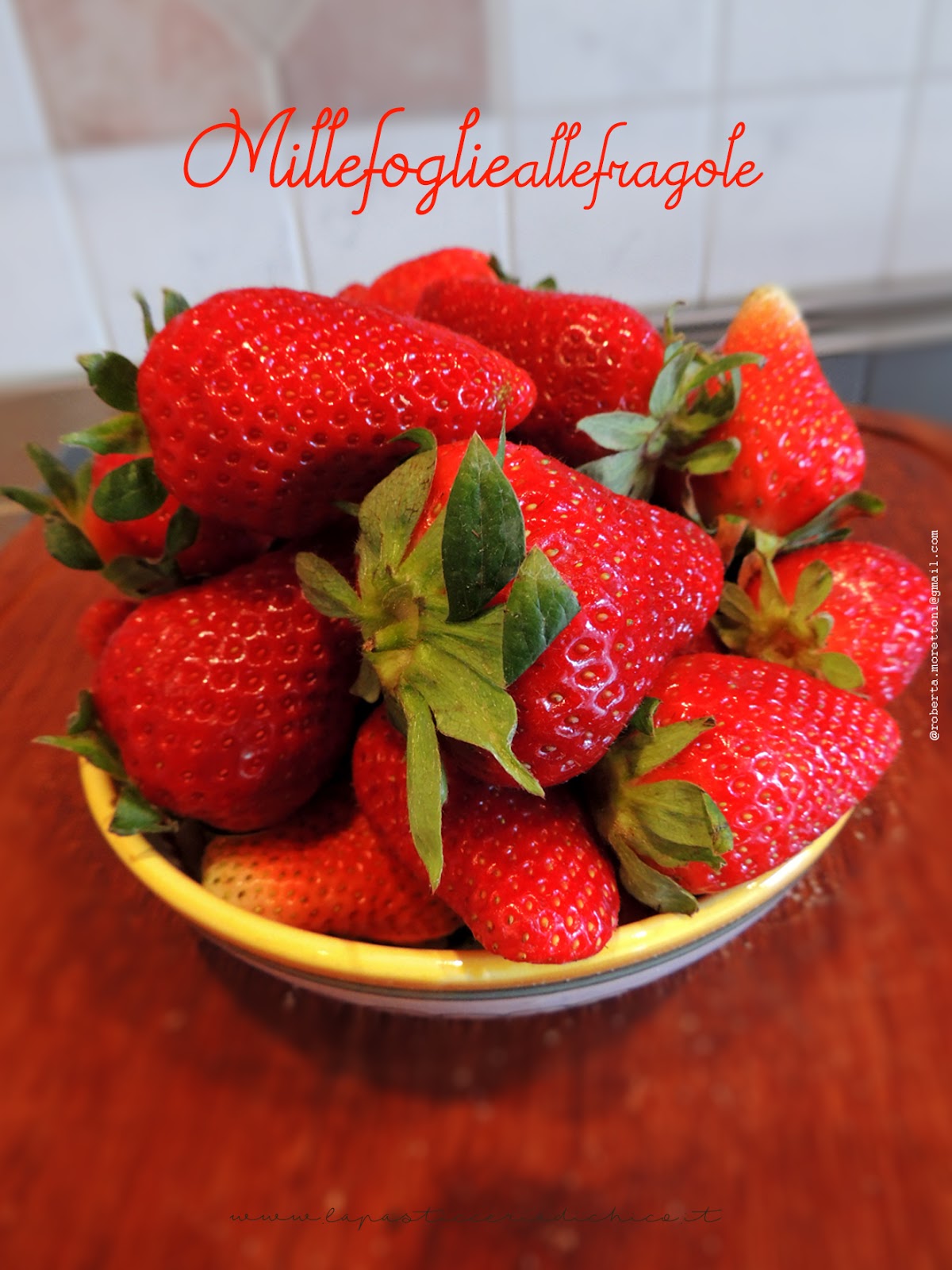 - Ora, tagliate alcune fragole a dadini, serviranno per mettere all’interno del millefoglie.