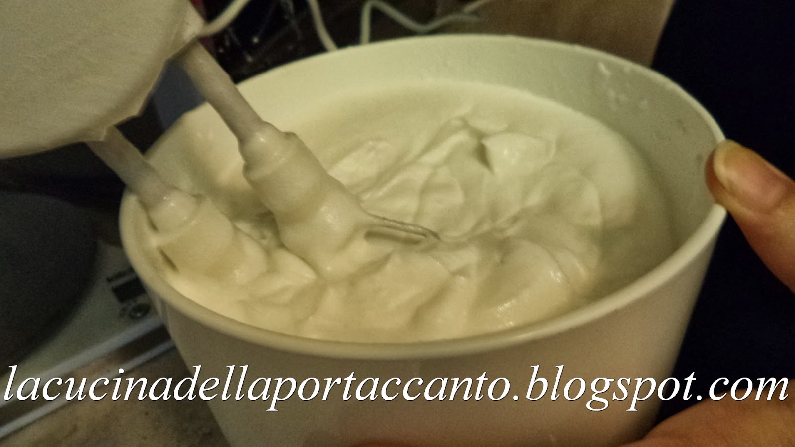 Nel frattempo, montare la panna con lo sbattitore elettrico.