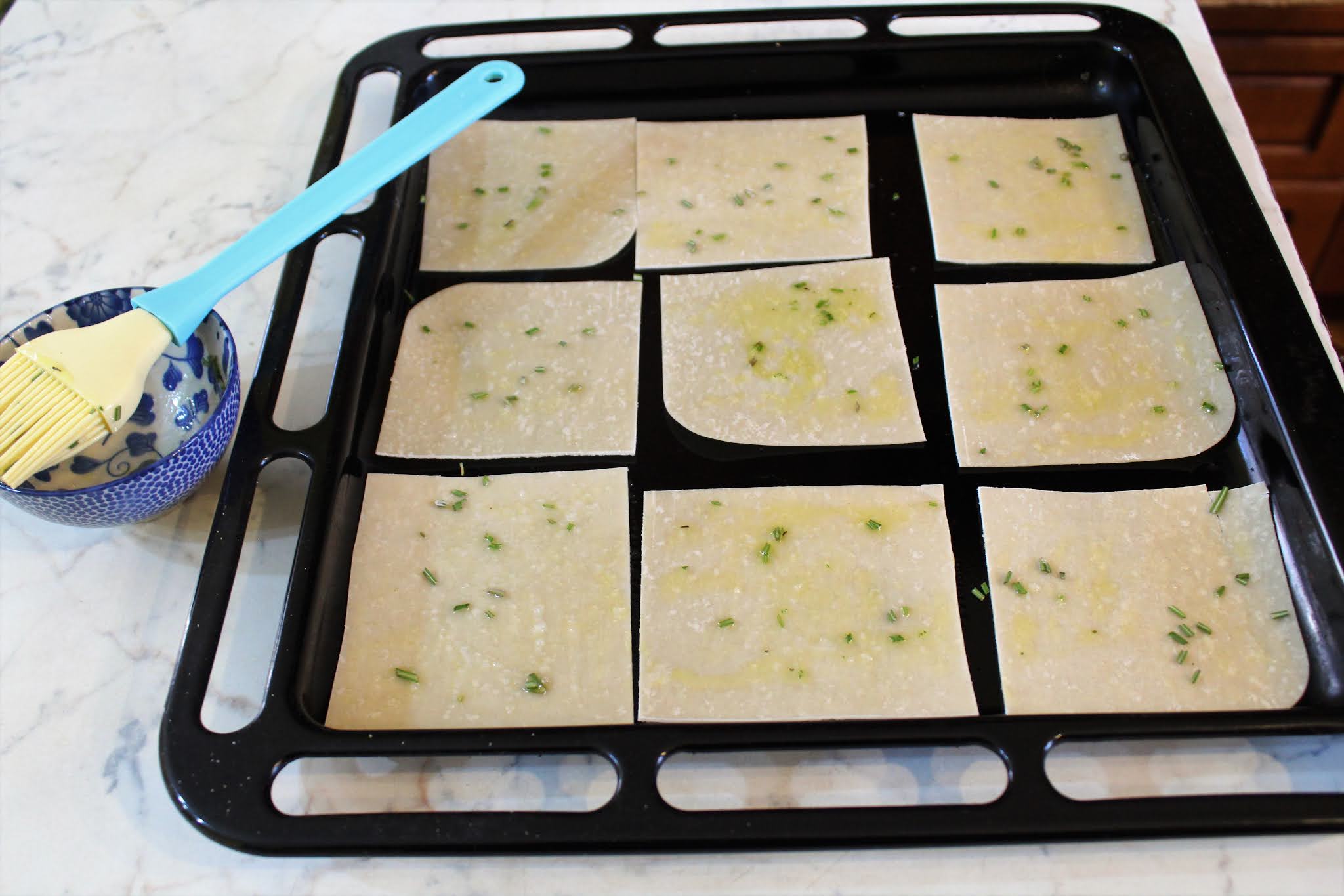 Posizionare le sfoglie direttamente sulla placca del forno (quindi senza usare carta forno).