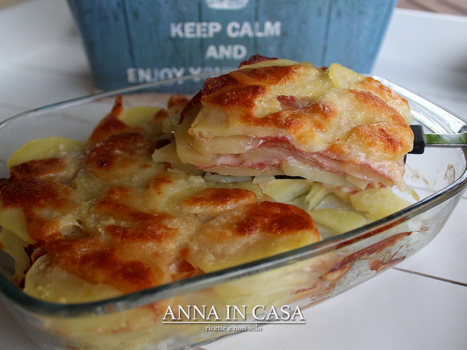 Lavare e sbucciare le patate, tagliarle a fettine sottili e scottarle in acqua salata a leggero bollore per 5 minuti.