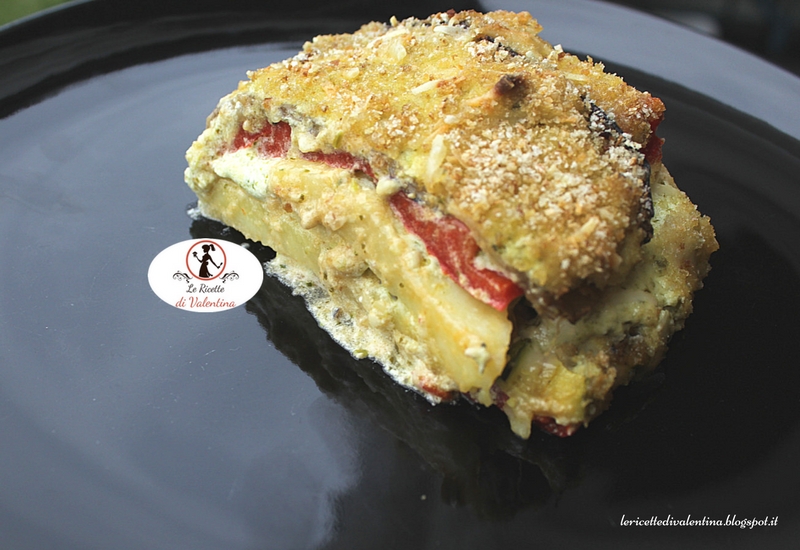Fate un primo strato di melanzane sul fondo della pirofila sporcatele con della crema al pesto e una spolverata di formaggio; proseguite con peperoni, zucchine e patate, sempre alternando gli strati di verdure con crema al pesto e formaggio. Procedete così fino all’esaurimento ingredienti terminate con uno strato di pecorino. Cospargete la superficie con il restante pangrattato e irrorate con un filo d’olio.