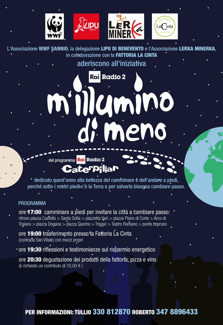 L’invito per il 23 febbraio 2018 è spegnere le luci e andare a piedi: una marcia, una processione, una ciaspolata, una staffetta, una maratona o una mezza maratona, un ballo in piazza o un pezzo di strada dietro alla banda musicale del paese.
