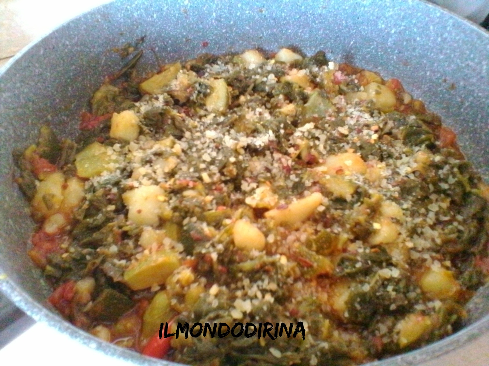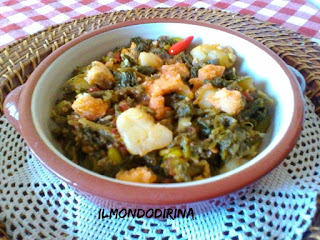 Fate cuocere, poi scolate le verdure e versatele nella padella con il sugo. Mescolate ben bene e quindi aggiungete una manciata di pecorino, un peperoncino ( intero o macinato ) e il pane raffermo a tocchetti. Coprite con il coperchio e lasciate la padella sul fuoco a fiamma bassa ancora per pochi minuti. Spegnete e fate riposare la minestra prima di consumarla, ne guadagnerà in sapore.