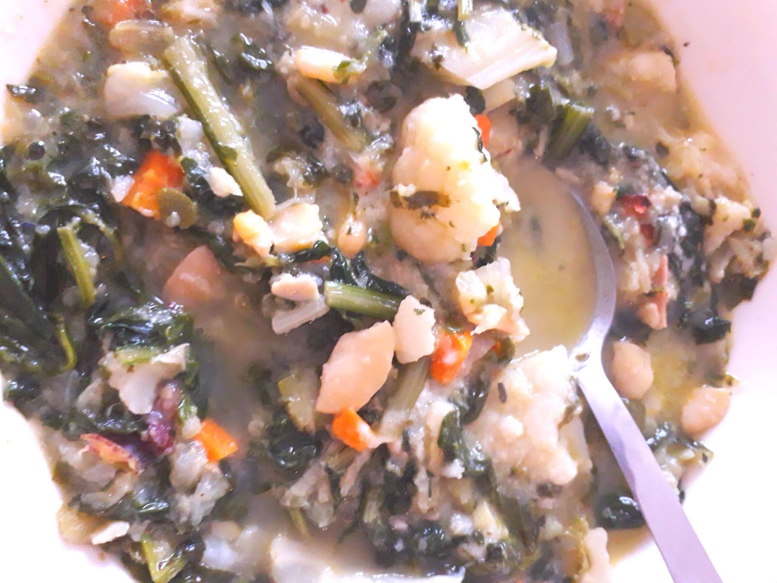 per 15′con aggiunta di acqua, poi unire a distanza di pochi minuti,prima ,patata,cavolo nero,poi broccoli e poi favetta,se occorre aggiungere altra acqua.