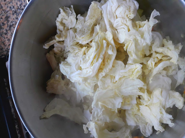 unire la verza ,dopo circa 7/8′ le zucchine,salare e aggiungere peperoncino,coprire e cuocere