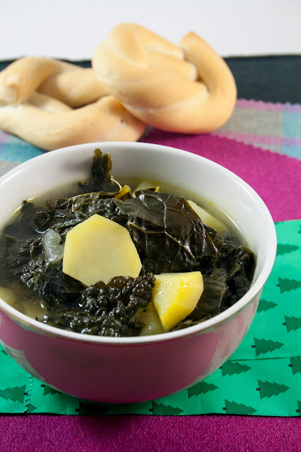 Aggiungere poi il cavolo nero pulito e spezzettato con le mani (QUI potete vedere come fare) e le patate sbucciate e ridotte a cubetti.