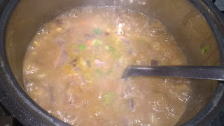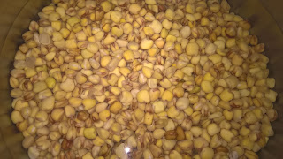 Le ho tenute a bagno per 24 ore, cambiando l’acqua ogni tanto. Le ho messe in una pentola, coperte d’acqua con due foglie d’alloro. Ho usato la pentola a pressione perchè dalle mie ricerche risultava che avessero bisogno di una lunga cottura, ma in effetti non era necessario ( 20 minuti).