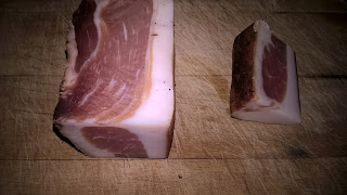 Ho tagliato a piccoli cubetti del prosciutto crudo.