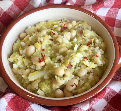 Infine versate il riso e fate cuocere per alcuni minuti in modo che la minestra si insaporisca bene. Servitela calda con una spolverata di peperoncino rosso piccante.