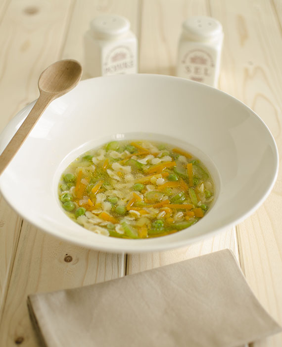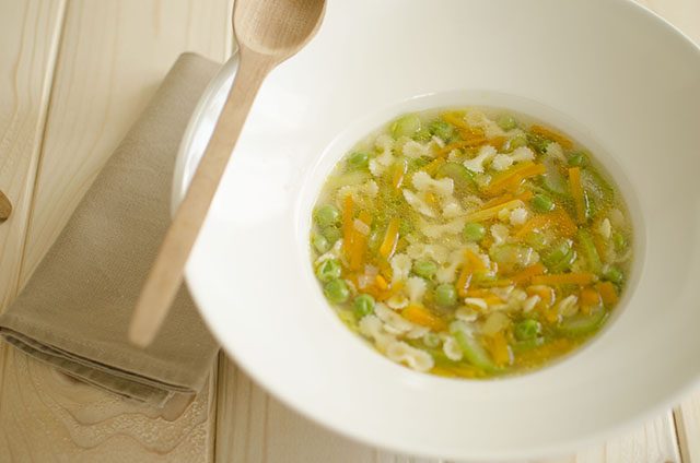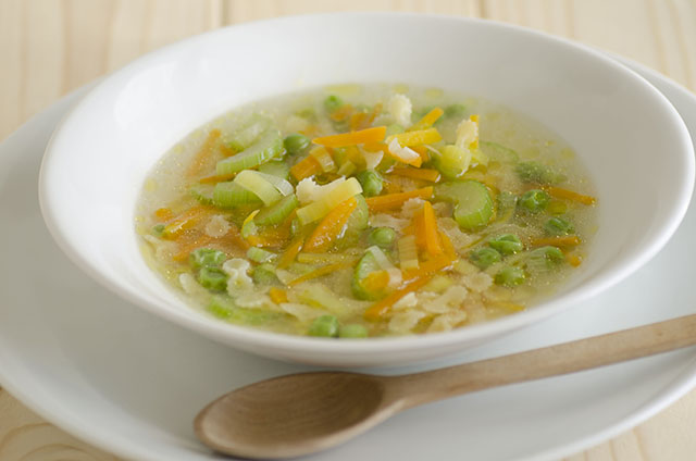 Bastano: un gambo di sedano fresco, una carota, una manciata di piselli freschi o surgelati e farfalline per minestra, con questi pochi ingredienti avrete una minestra di verdura per tutte le stagioni.