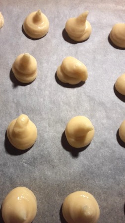 Sulla confezione è suggerito l’uso di due cucchiai per fare delle piccole quenelle prima di deporle sulla teglia ricoperta da carta da forno…