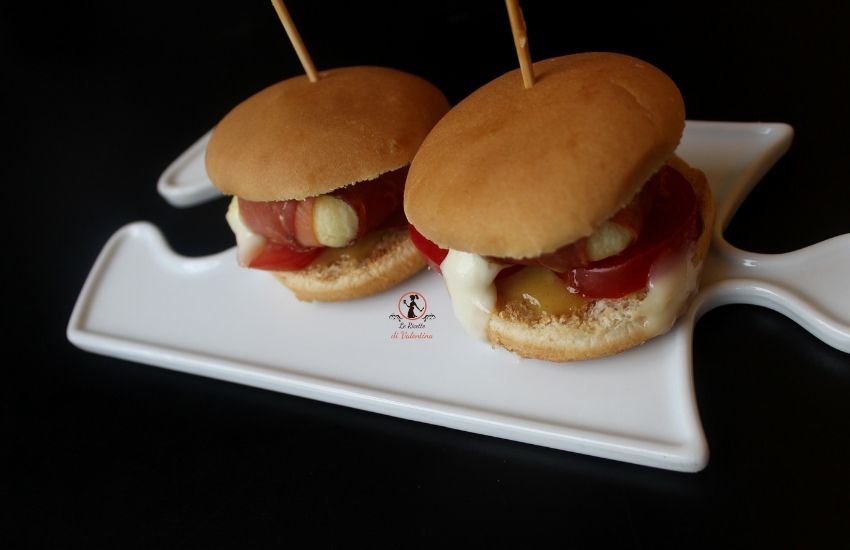 Appena prima di andare in tavola passate a 180° per 3 minuti i tomini avvolti nello speck nella friggitrice ad aria, poi prelevateli con una paletta e finite di comporre i panini.