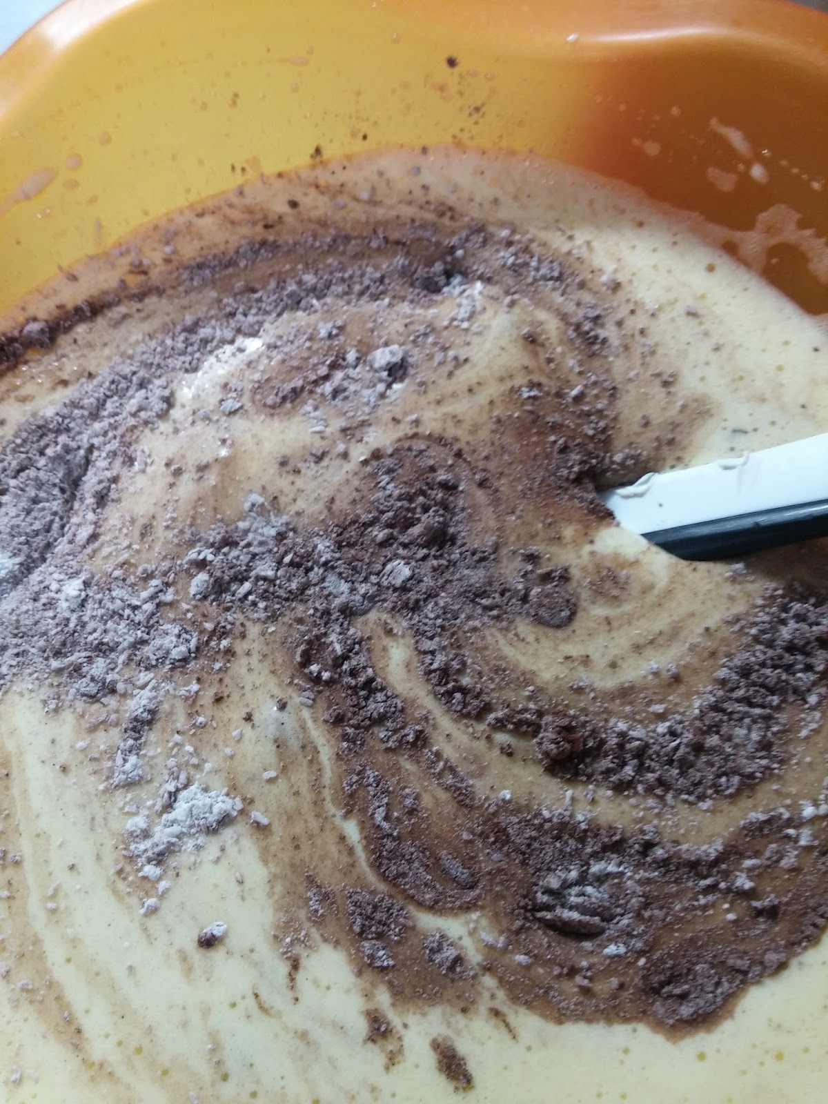 4 uova; 30 g di cacao; 50 g di farina di cocco; 130g di zucchero; 90g di farina “0″ autolievitante.