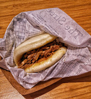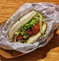 Visto il costo contenuto (i prezzi dei bao vanno da € 3,50 a salire a seconda della farcia) ne ho presi 2, divorati in 3 bocconi! il primo con maiale sfilacciato, granella di nocciole, salsa agrodolce ed erba cipollina, per il secondo ho chiesto consiglio alla ragazza al bancone e ho preso un bao con all’esterno del sesamo nero, pollo fritto (croccante fuori e succoso dentro), lattuga a striscioline e salsa toriyaki.